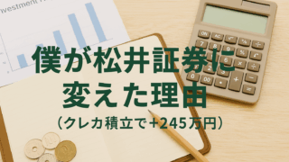 NISAをどこで始めるか迷っている人へ。僕がSBI・楽天から松井証券に変えた理由を解説します。実質2%還元のクレカ積立・リスク分散・サポートの3拍子で、長期投資が「仕組み化」できる口座選びとは?